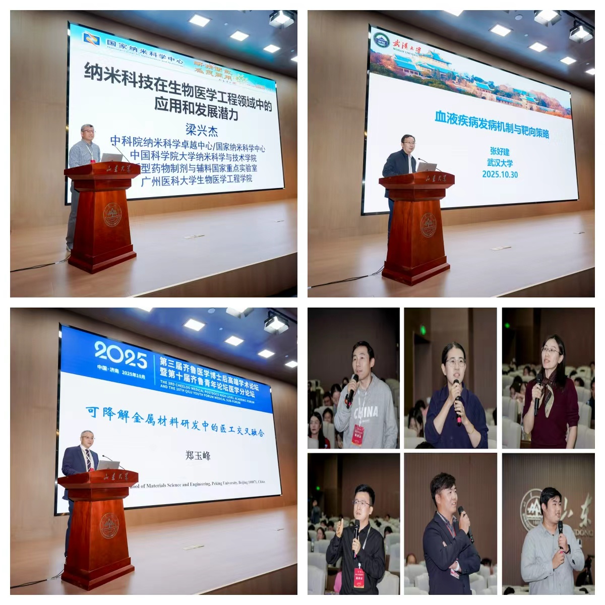 10月29日下午,第三届齐鲁医学博士后高端学术论坛暨第十届齐鲁青年论坛医学分论坛在医道大学堂开幕。论坛以“交叉引领,融合创新”为主题,聚焦医工交叉、临床诊疗前沿进展,邀请国家纳米科学中心梁兴杰研究员、武汉大学医学研究院张好建教授和北京大学生命健康材料研究中心郑玉峰教授作学术分享。活动采用主论坛与9个分论坛相结合的形式,通过学术报告、专题沙龙等多元载体,推动医学研究从“单一领域突破”向“多学科协同创新”转型。全国医学院校专家、青年学者及齐鲁医学院相关负责人等200余人参会,共话学术前沿、共商合作大计。